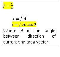 The current density at any point inside a conductor is defined as the amount of charge flowing per sec through a unit area held normal to the direction of the flow of charge at that point.