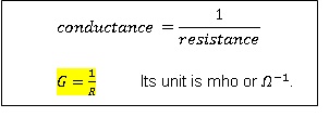 The conductance of a conductor is the ease with which electric charges flow through it. It is equal to the reciprocal of its resistance and is denoted by ‘G’.