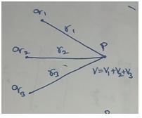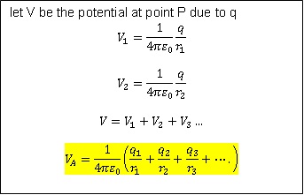 Let q1, q2, q3 and so on be the charges are placed at the distances r1, r2, r3, and so on respectively from the point P.