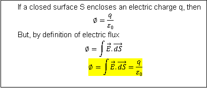 It states that the total electric flux through a closed surface enclosing a charge is equal to 1/ε₀ times the magnitude of the charge enclosed.
