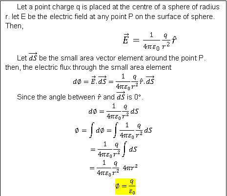 - Let a point charge q is placed at the centre of a sphere of radius r. let E be the electric field at any point P on the surface of sphere. Then,`