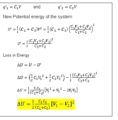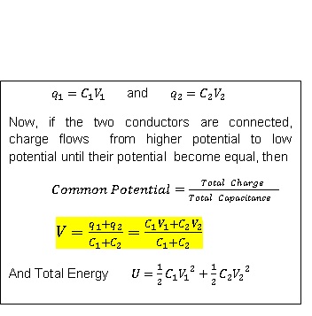 Let us consider two isolated conductors of capacitances C1 and C2 carrying charges q1 and q2 respectively. Let V1 and V2 be their respective potential, then